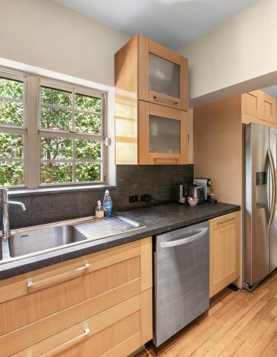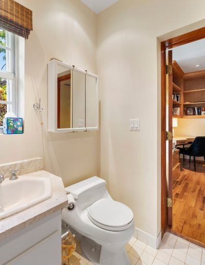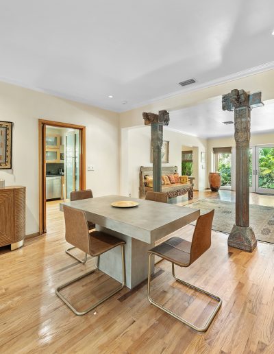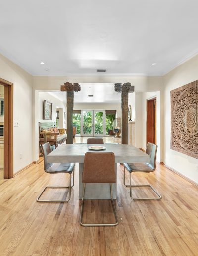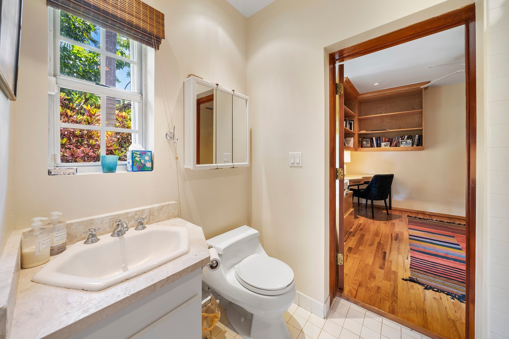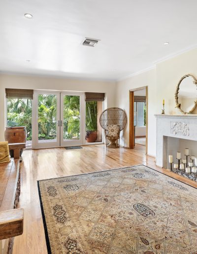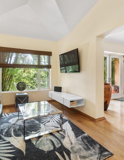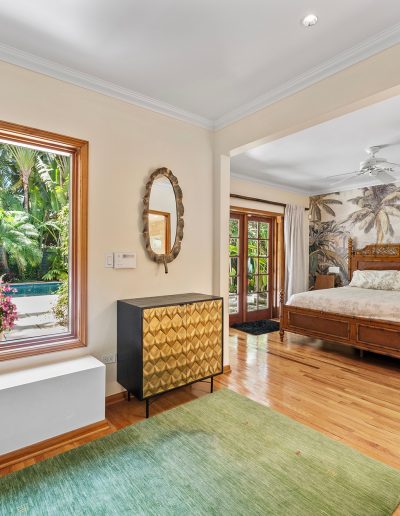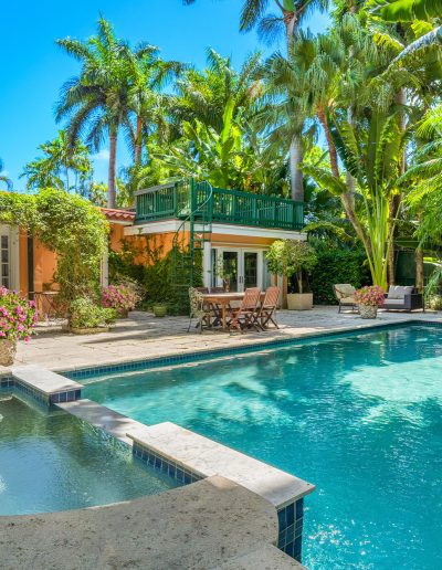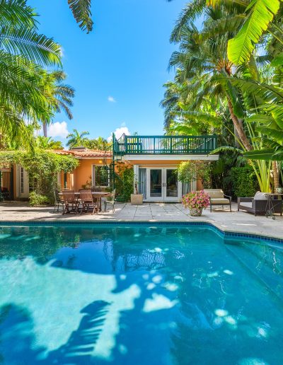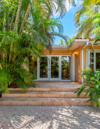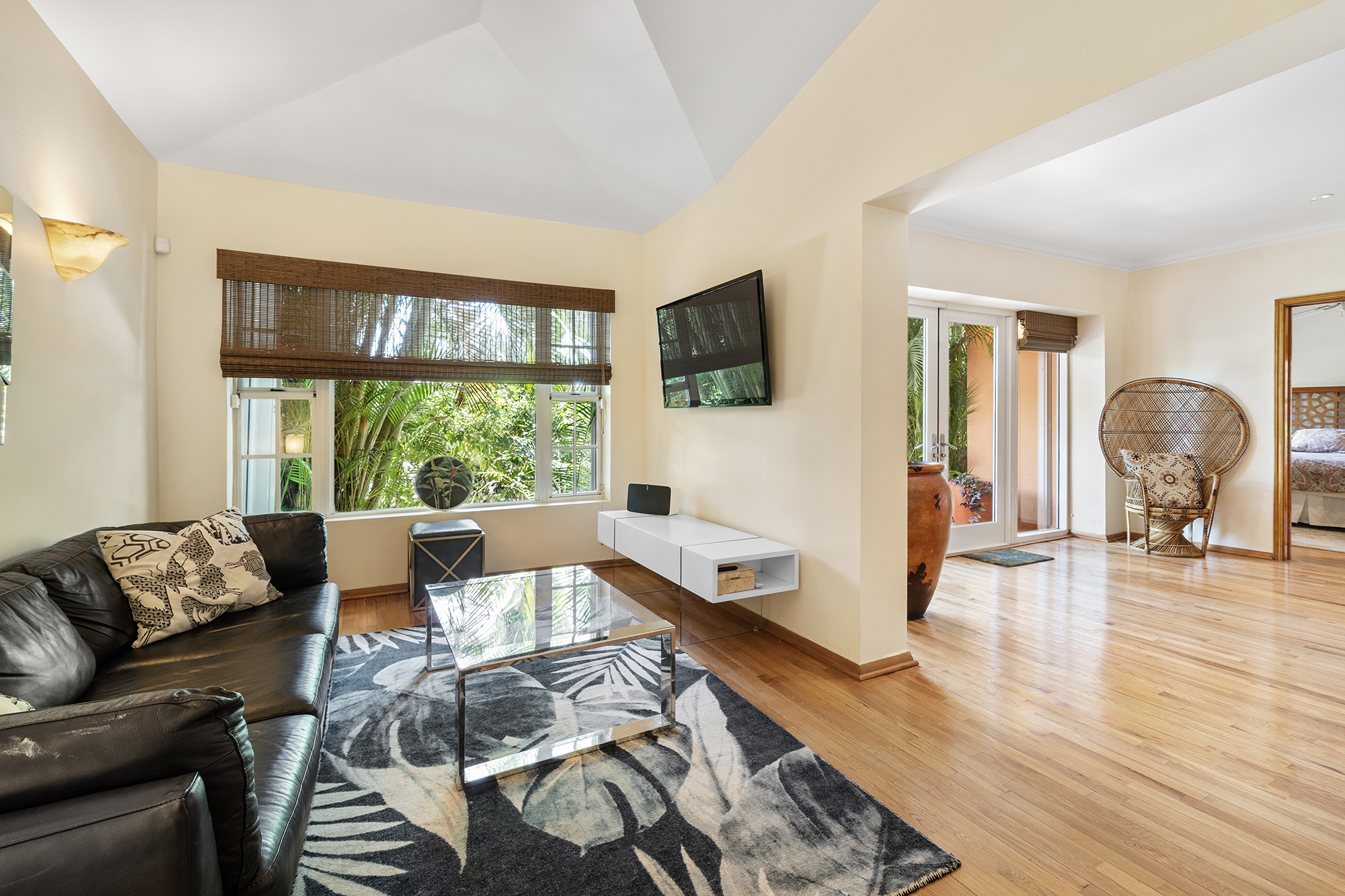 Tucked behind lush landscaping in the coveted Venetian Islands, this gated Miami Beach bungalow blends timeless charm with modern comfort. A formal entry leads to a warm, light-filled living room with wood floors, a marble fireplace, dining area, and den. The kitchen is equipped with stainless steel appliances and a gas range.
